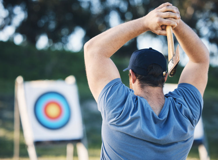 Η ρίψη τσεκουριών είναι παρόμοια με τη ρίψη με βελάκια και τη ρίψη μαχαιριών, καθώς περιλαμβάνει τη ρίψη ενός αιχμηρού αντικειμένου (στην προκειμένη περίπτωση, ενός τσεκουριού) σ’ έναν ξύλινο στόχο. Υπάρχει ένα σύστημα βαθμολόγησης, όπου το σκορ του παίκτη καθορίζεται από το σημείο που χτυπάει το τσεκούρι του στο στόχο.